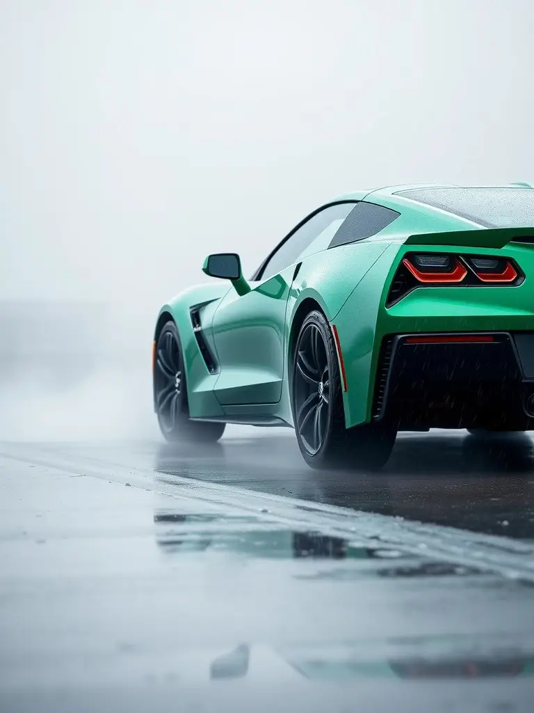 Corvette Stingrays in various colors cutting through stormy weather evoke a striking scene of beauty and power. Their sleek designs