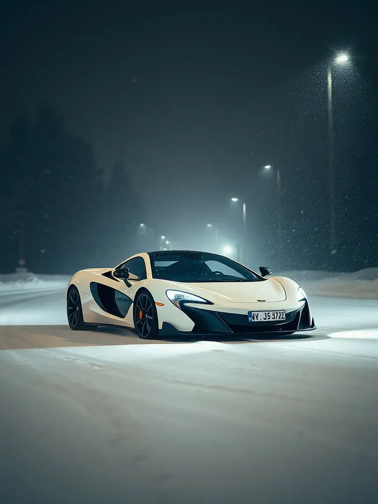 A white McLaren cruising through snow isn’t just a sight; it’s a vibe. Picture this sleek machine carving through winter’s