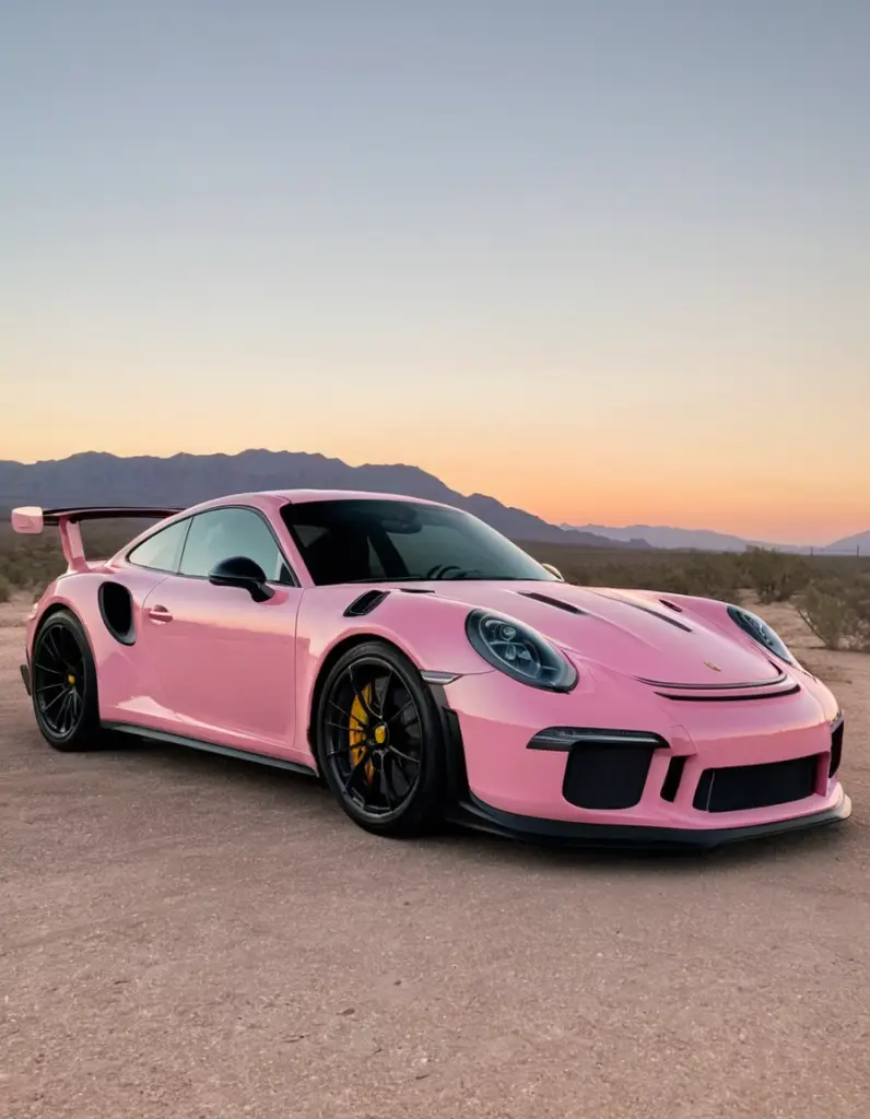 A vibrant vision of automotive excellence, this pink Porsche 911 GT3 RS commands attention. Its sleek silhouette, aggressive stance, and bold colour choice make it a true head-turner. The car’s powerful engine and advanced aerodynamics promise exhilarating performance, while the serene sunset backdrop adds a touch of tranquillity. This image captures the perfect blend of speed, style, and natural beauty.